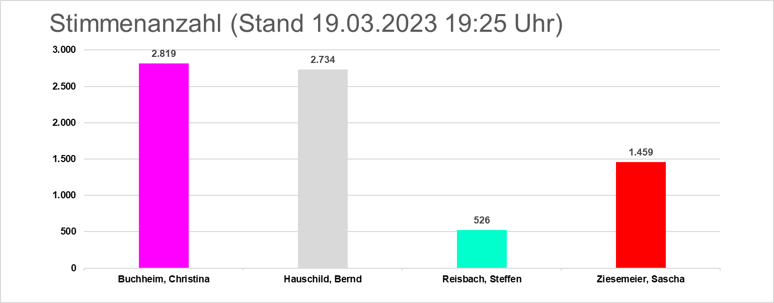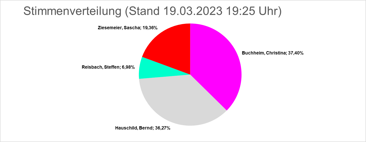 Das Ergebnis macht eine Stichwahl am 02.04.2023 zwischen den Bewerbern Buchheim und Hauschild erforderlich.