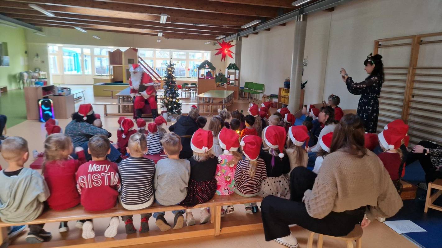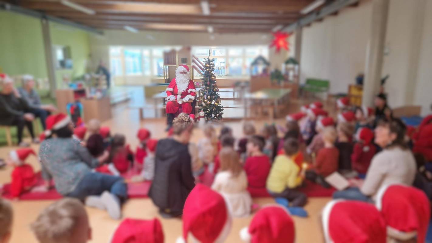 Mit diesem schönen Weihnachtslied haben wir heute die Weihnachtsfeier eröffnet und den Weihnachtsmann begrüßt.
