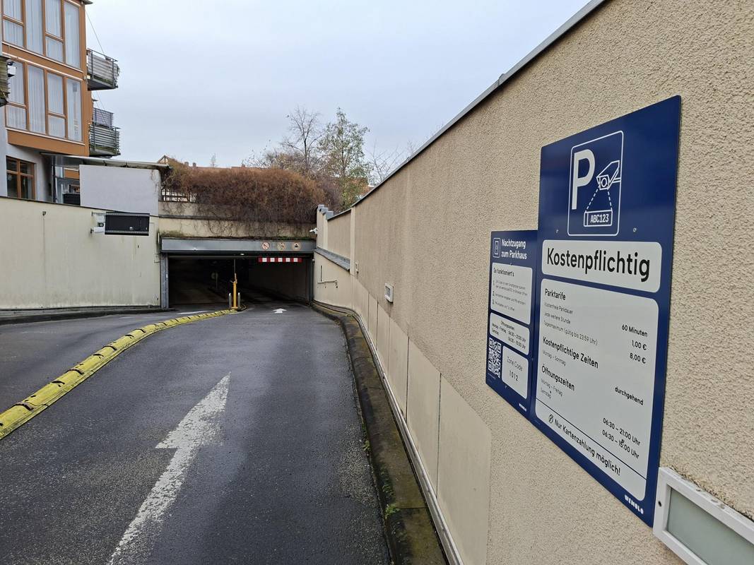 Kontaktdaten bei Fragen zum Parkvorgang sind auf Hinweisschildern in den Tiefgaragen entsprechend ausgeschildert.