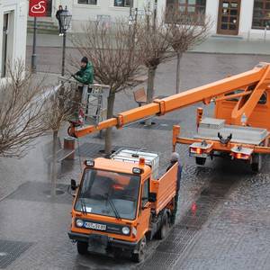 Bäume auf dem Köthener Marktplatz wurden per Hochdruckreiniger entlaust