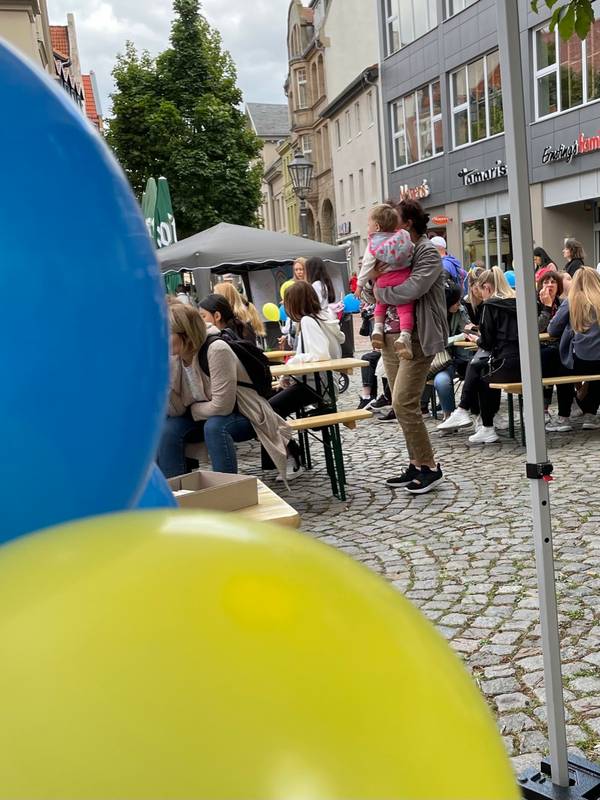 Das Jugendforum Köthen besteht derzeit aus 18 Mitgliedern und der Friedenslauf für die Ukraine war die erste eigene Veranstaltung, die durch die Schülerinnen und Schüler des Jugendforums organisiert wurde. „Wir waren in den vergangenen Jahren schon beim Kinderfest im Friedenspark hier in Köthen (Anhalt) dabei“ erläutert Alexander Wolf. „Wir waren auch beim Familienfest in der Gartensparte oder bei dem Contest von Straight Outta Keethen e.V. mit vertreten. Heute ist es die erste, durch das Jugendforum organisierte Veranstaltung“ fährt der 16-Jährige fort. Die war auch ein voller Erfolg. Die erwartete Besucherzahl wurde mehr als verdoppelt. Viele Köthenerinnen und Köthener haben sich auf dem Holzmarkt versammelt. Aus Solidarität mit den Geflüchteten sind zahlreiche Läuferinnen und Läufer in den Nationalfarben der Ukraine gekommen, um ein Zeichen für den Frieden zu setzen.