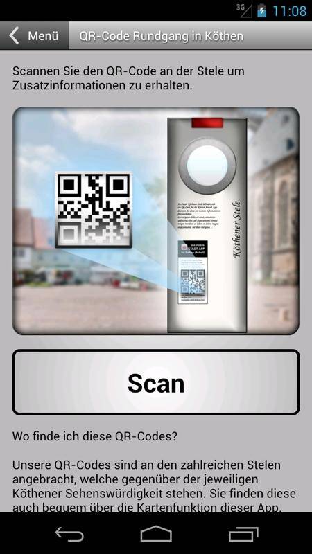 Zudem informiert die App über verschiedene Freizeitmöglichkeiten, die Köthen zu bieten hat. Überraschendes und Kurioses aus früheren Zeiten erfährt der App-Nutzer mittels kleiner Anekdoten, die beim Klicken auf ein rotes Lesezeichen sichtbar werden. Auch Bildergalerien und ein Stadtplan, auf dem die Sehenswürdigkeiten der Stadt eingezeichnet sind, stehen zur Verfügung.